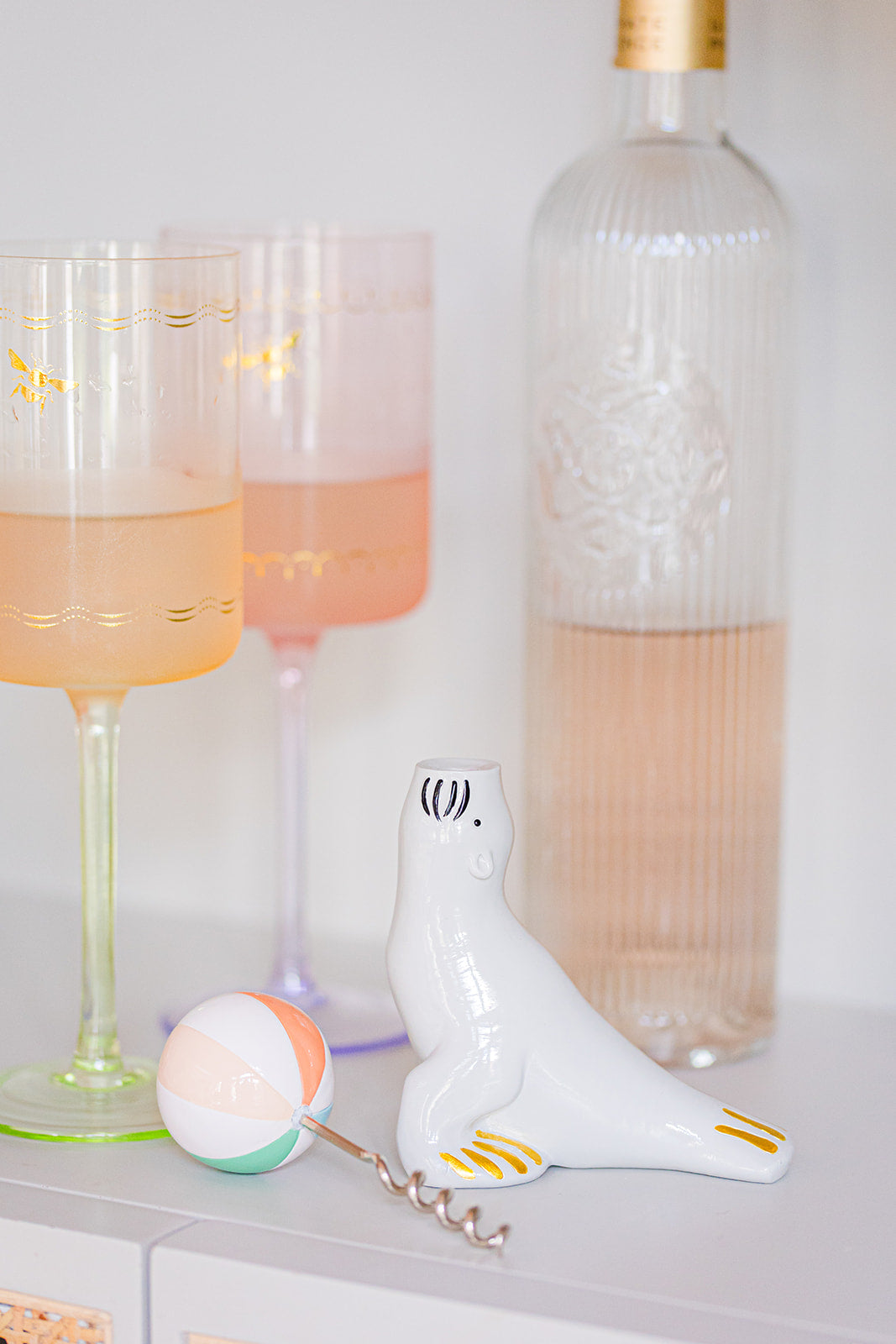 The perfect bundle for the wine lovers! This is your sign to get together with your loved ones with this collection of bar accessories and glasses to share a bottle. This has everything you need, including a whale bottle stopper in the rare event that you have some leftover wine!