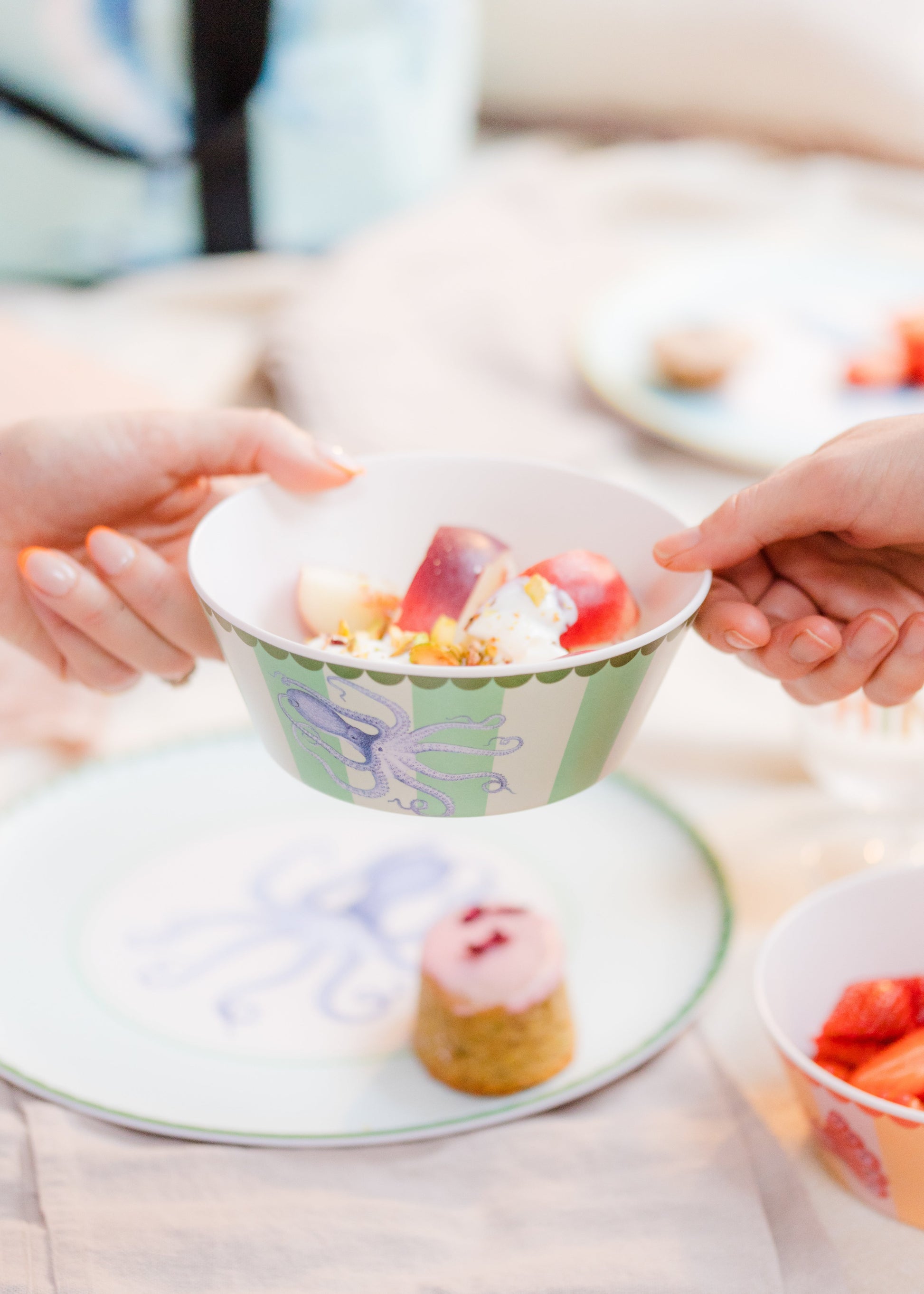 Bring a touch of under the sea to picnics and parties with this picnicware bundle. Each plate features a different shade and a Yvonne Ellen playful animal illustration. Made of shatter-resistant matt melamine, they're dishwasher safe for everyday use.