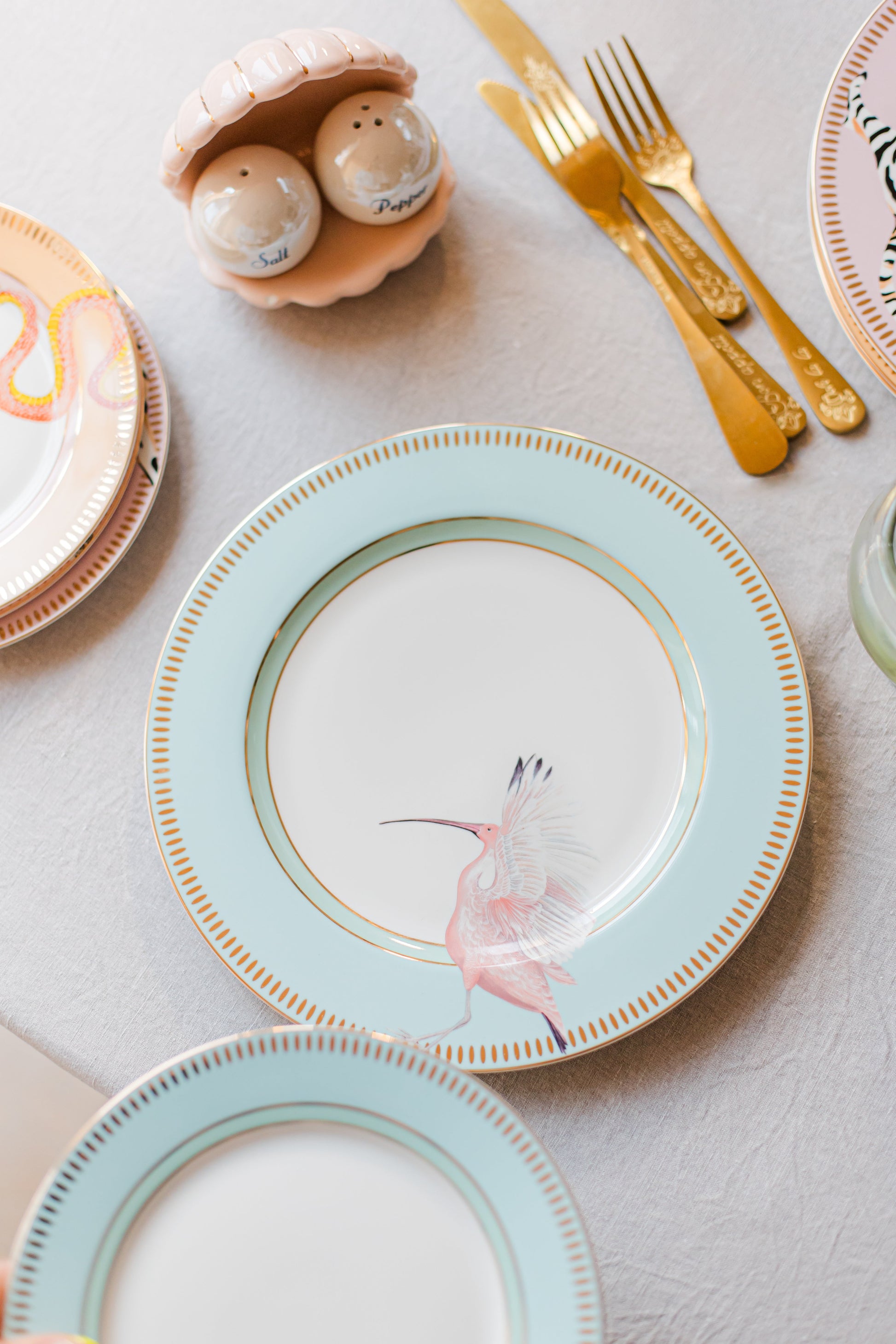 This quirky set is the embodiment of the Yvonne Ellen style: animal life juxtaposed in original, colourful compositions. The pastel dinner plates are adorned with four of my iconic animals decorated with cutesy accessories. The gold details make this set perfect for adding a funky feel to your next dinner party!