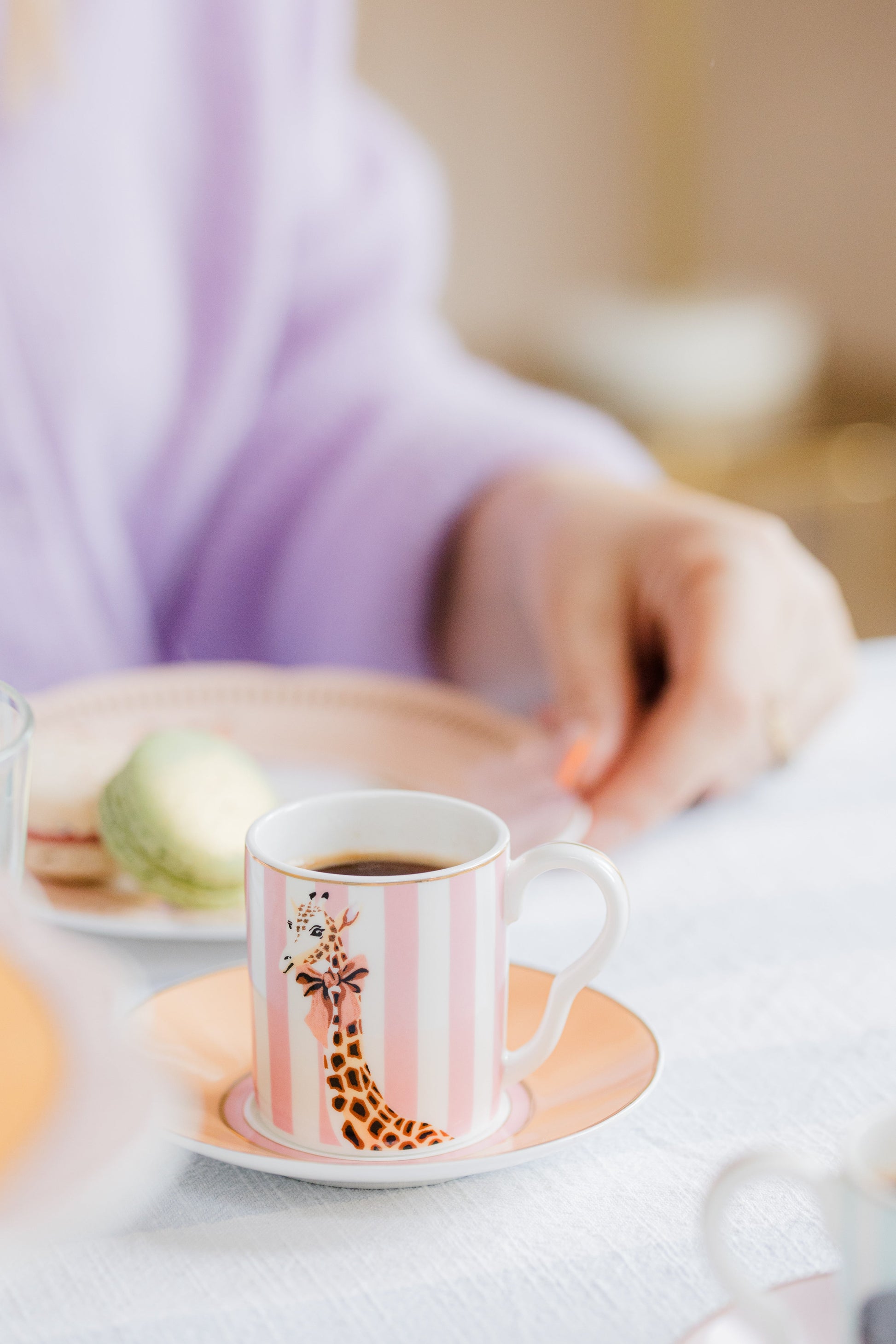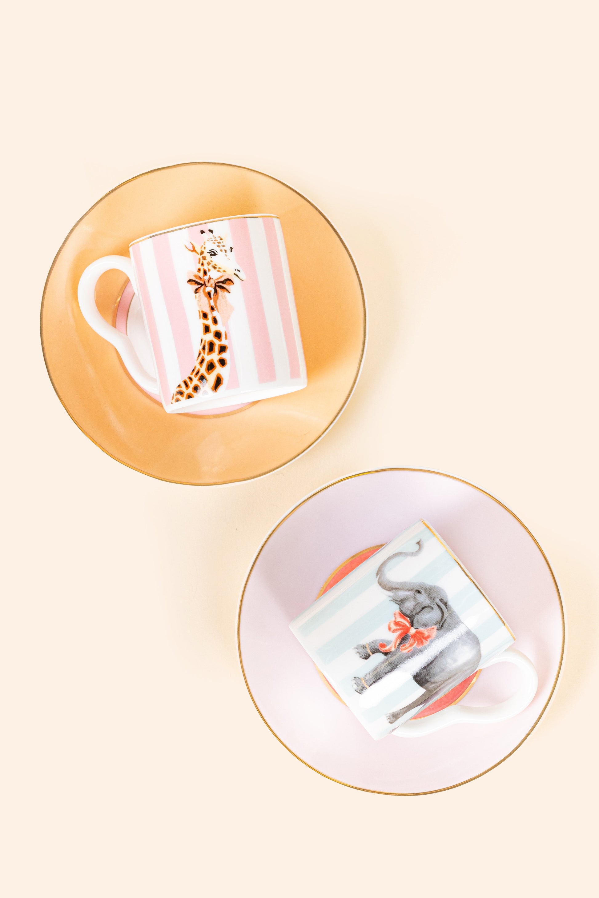 This quirky set is the embodiment of the Yvonne Ellen style: animal life juxtaposed in original, colourful compositions. The pastel espresso cups and saucers are adorned with two of my iconic animals decorated with cutesy accessories. The perfect size for a pick me up coffee!