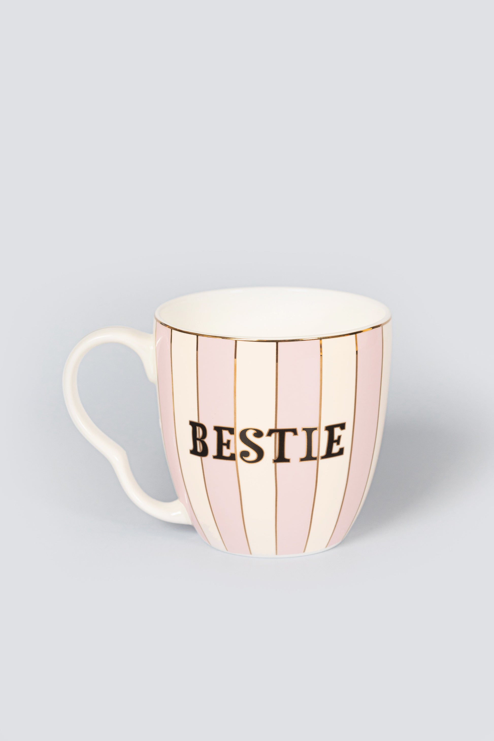 This mug is an ideal gift for birthday's, Christmas or just because, it's a great way to celebrate your beautiful best friend. This large mug has a stripey pastel background, a gold rim for extra elegance! Our favourite budgies, dressed with party hats, adorn the sides of the mug and there's a BESTIE slogan on the other side!