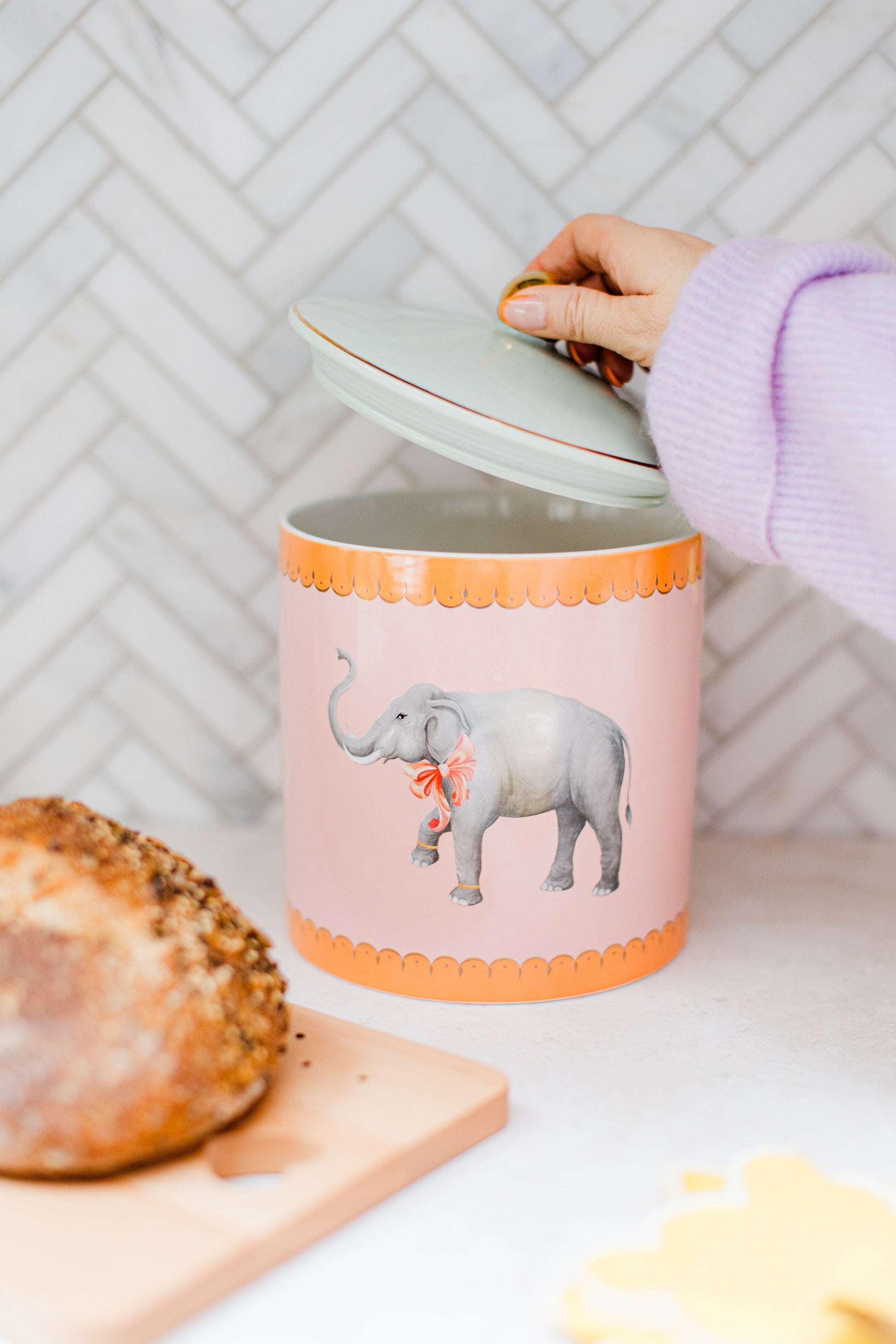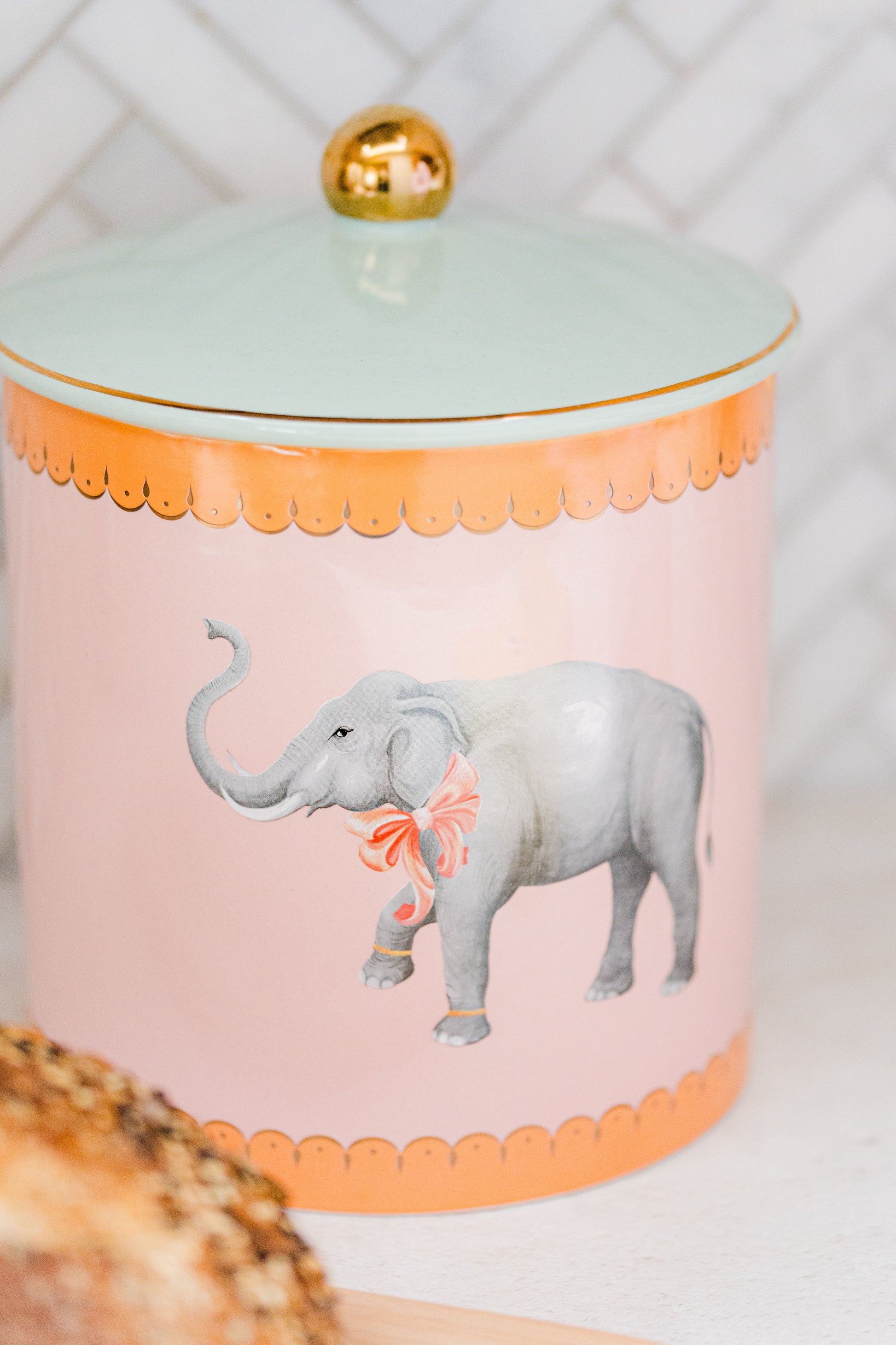 Whether you are keeping leftover brownies or storing biscuits, this large storage jar will do the job perfectly! Make your pantry more stylish while storing your sweet treats with this beautiful Yvonne Ellen Biscuit Jar adorned with a cheeky elephant and vintage gold details.