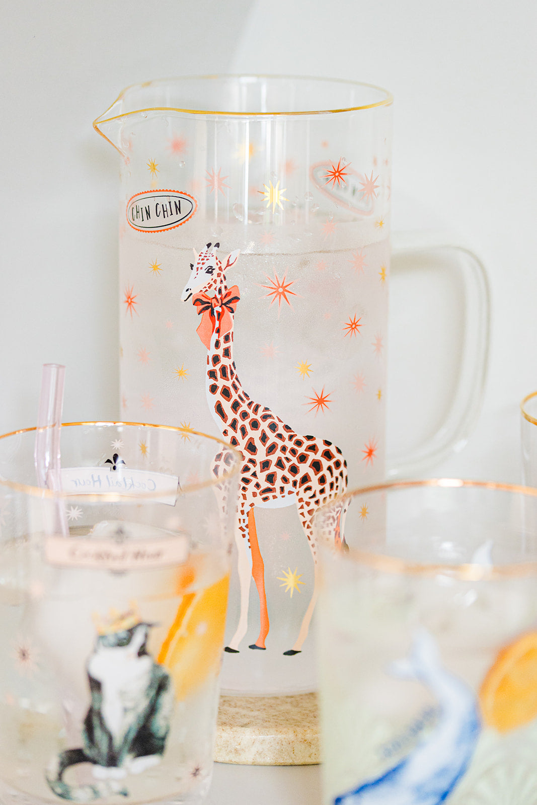 Serve your beverages in style with our Glass Drink Jug, featuring the iconic giraffe design and gorgeous gold detailing. Perfect for entertaining or everyday use, this jug adds a touch of elegance and whimsy to your table setting. Crafted from high-quality glass, it combines functionality with eye-catching charm, making it a delightful addition to any home.