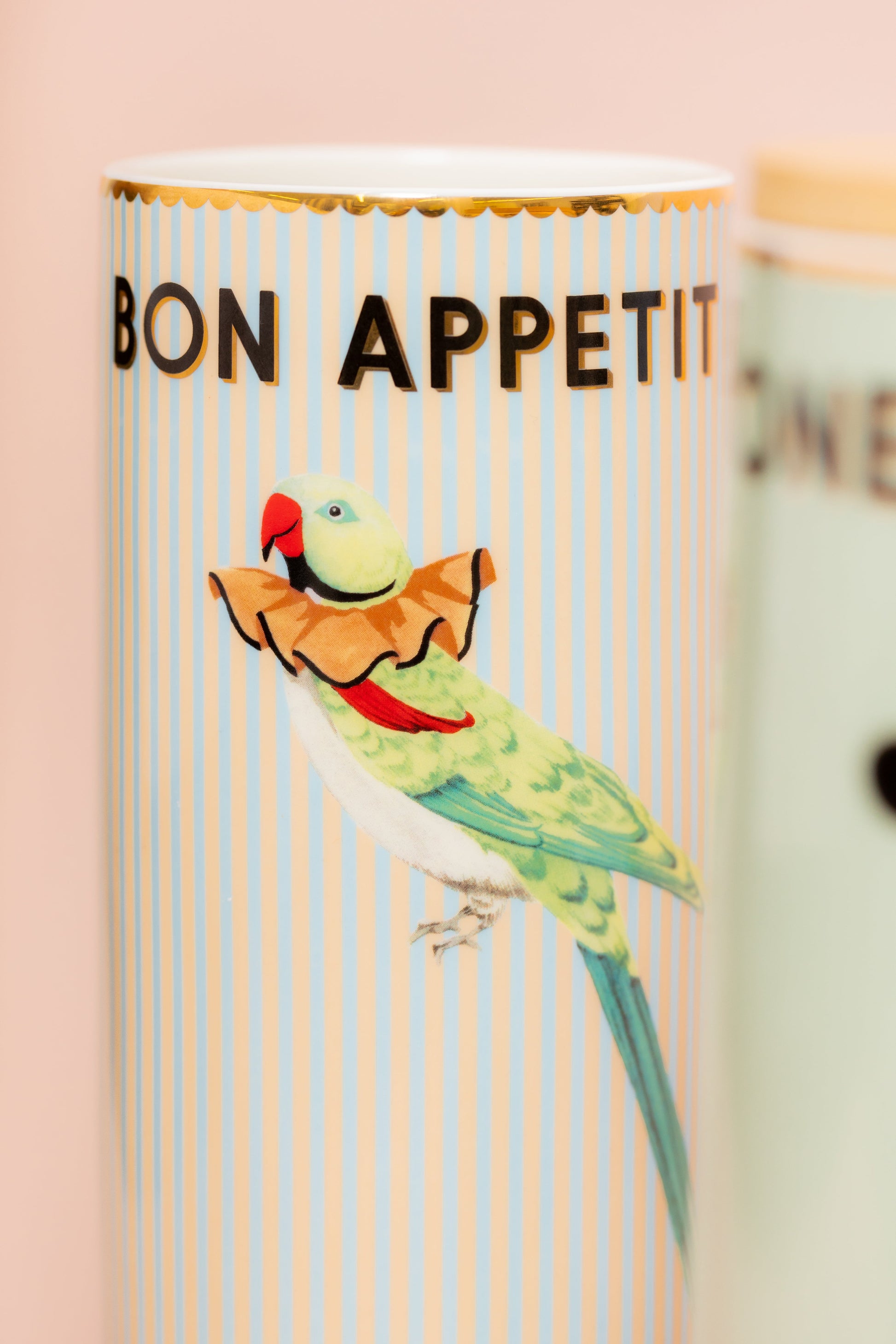Add our fine china storage jars to your kitchen or bathroom for a stylish solution! The bamboo lid fits neatly on the canister, making the storage jars airtight and suitable for storing dried foods, coffee, tea or sugar. Decorated with lots of gold detailing around the rims and featuring Yvonne Ellen's iconic animal illustrations. How CUTE?!