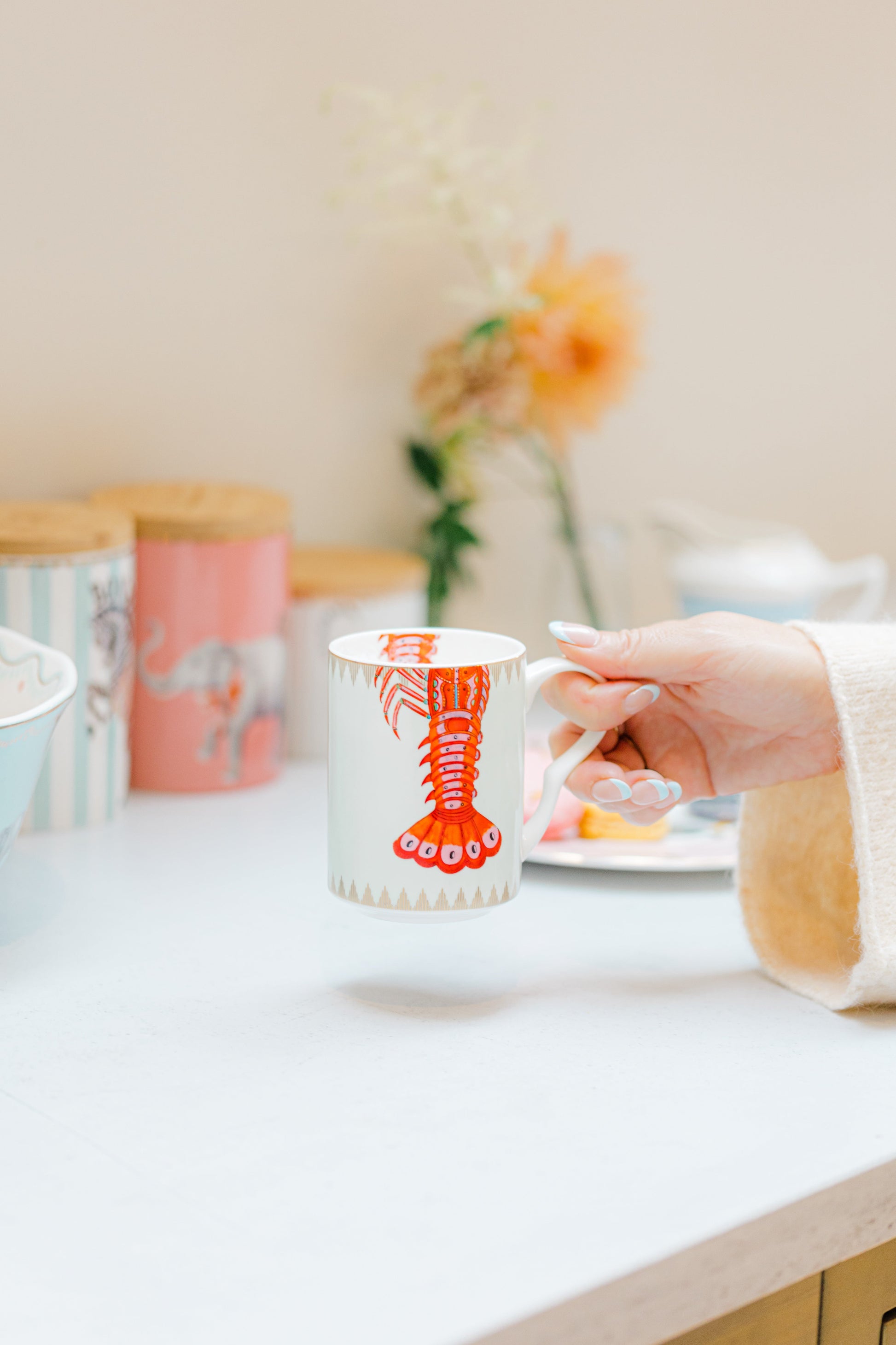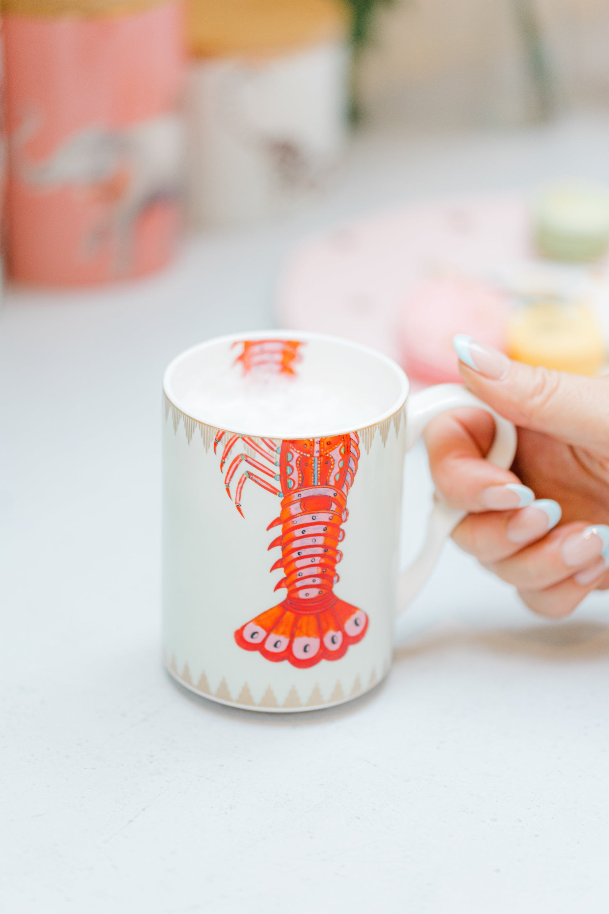 Indulge in a playful yet sophisticated way to enjoy a cup of coffee with the Yvonne Ellen Lobster Mug. With its stunning pale green background and vintage-inspired gold detailing, this mug is the perfect gift for any occasion. Plus, its unique lobster design adds a touch of elegance to your everyday routine.