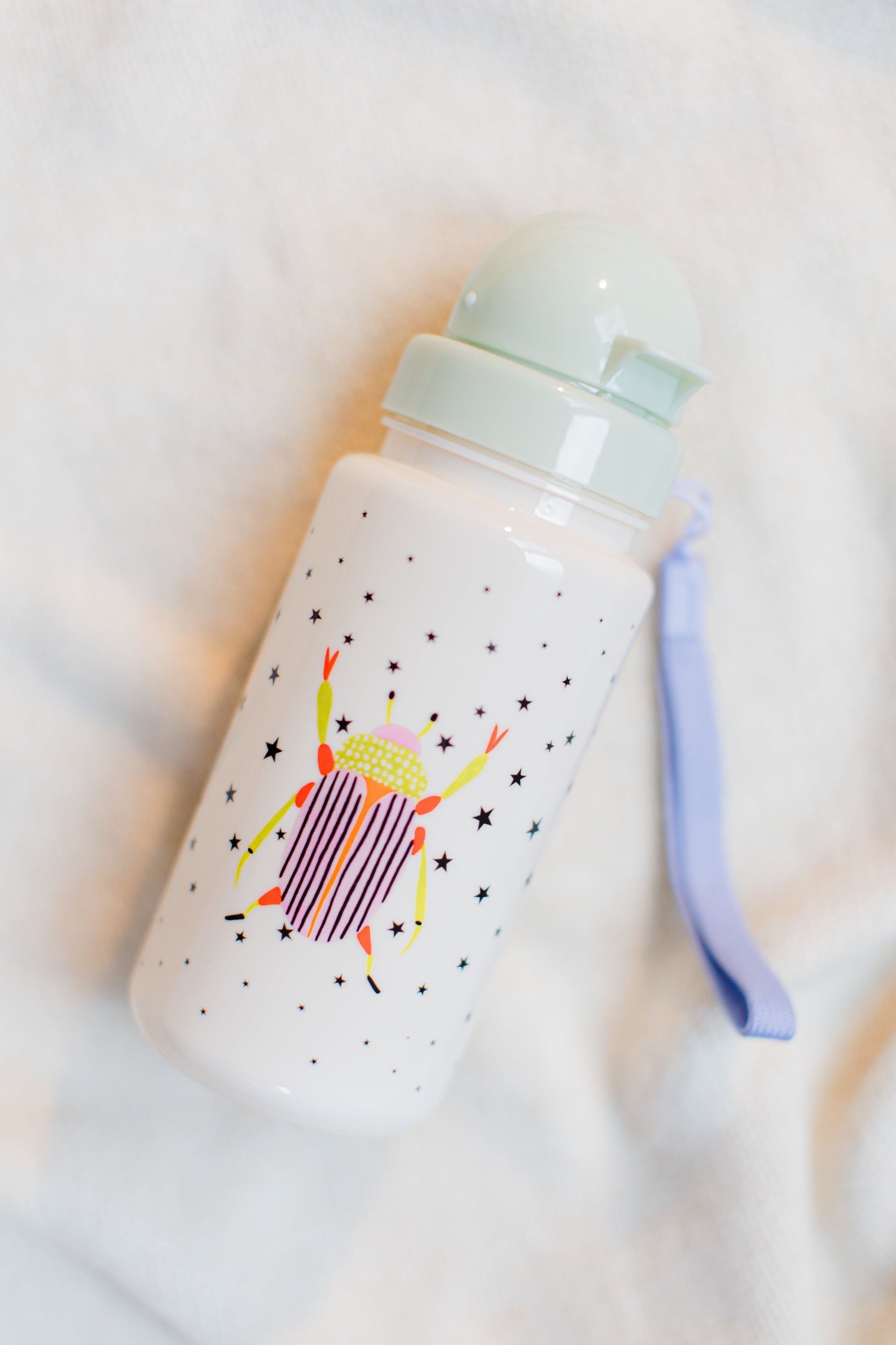 Celebrate the uniqueness of your own little limited edition with this fabulous 'Limited Edition' Water Bottle! Our rainbow slogan is sits on a cream base with a black star pattern. Finished with a mint pastel lid and lilac strap. How Cute?!