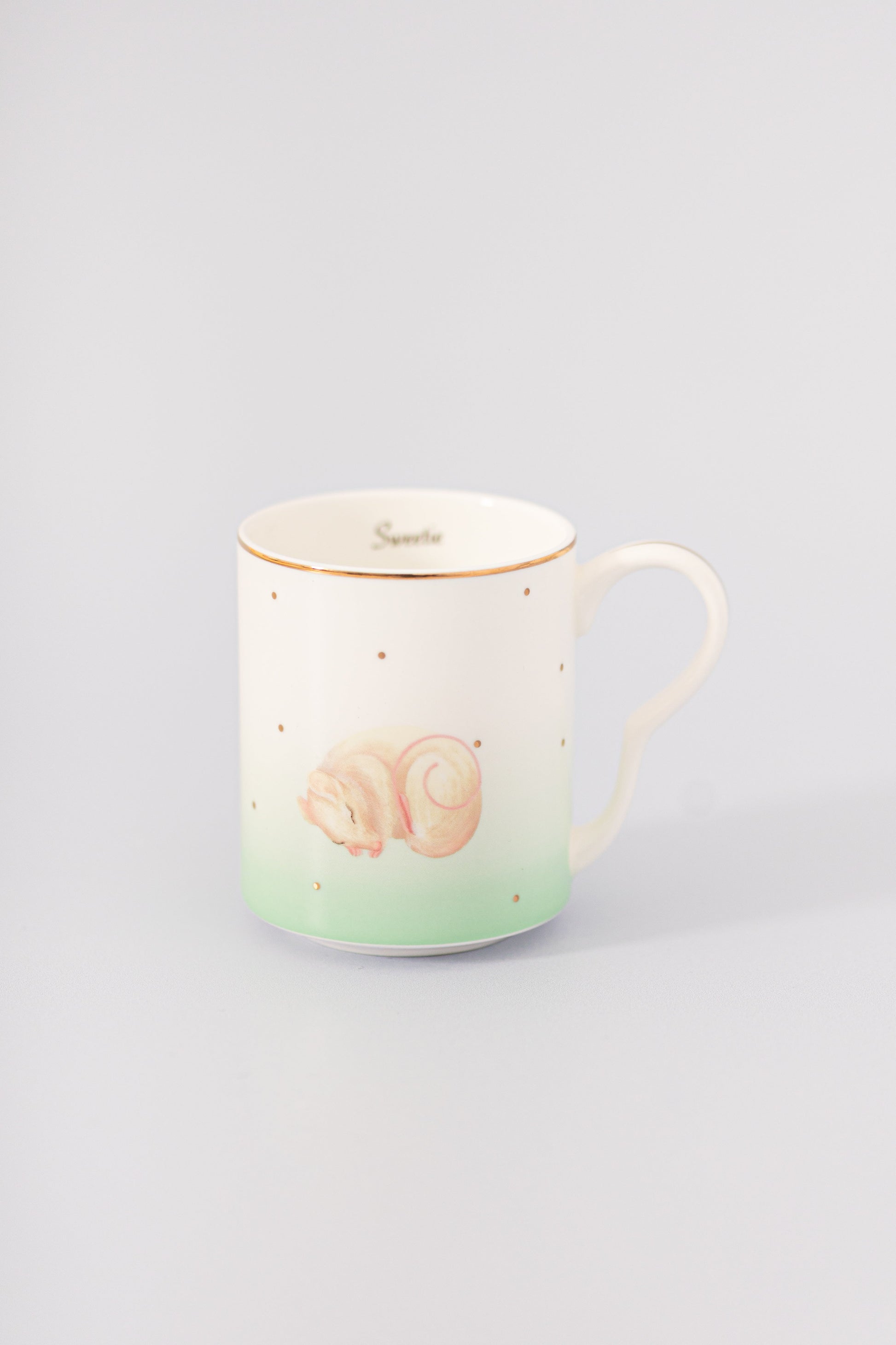 This truly vintage inspired design is adorned with a little mousey on green ombre mug. Gold trimming together with a delightfully fashioned ridge handle make this a pleasure to look at and to use.
