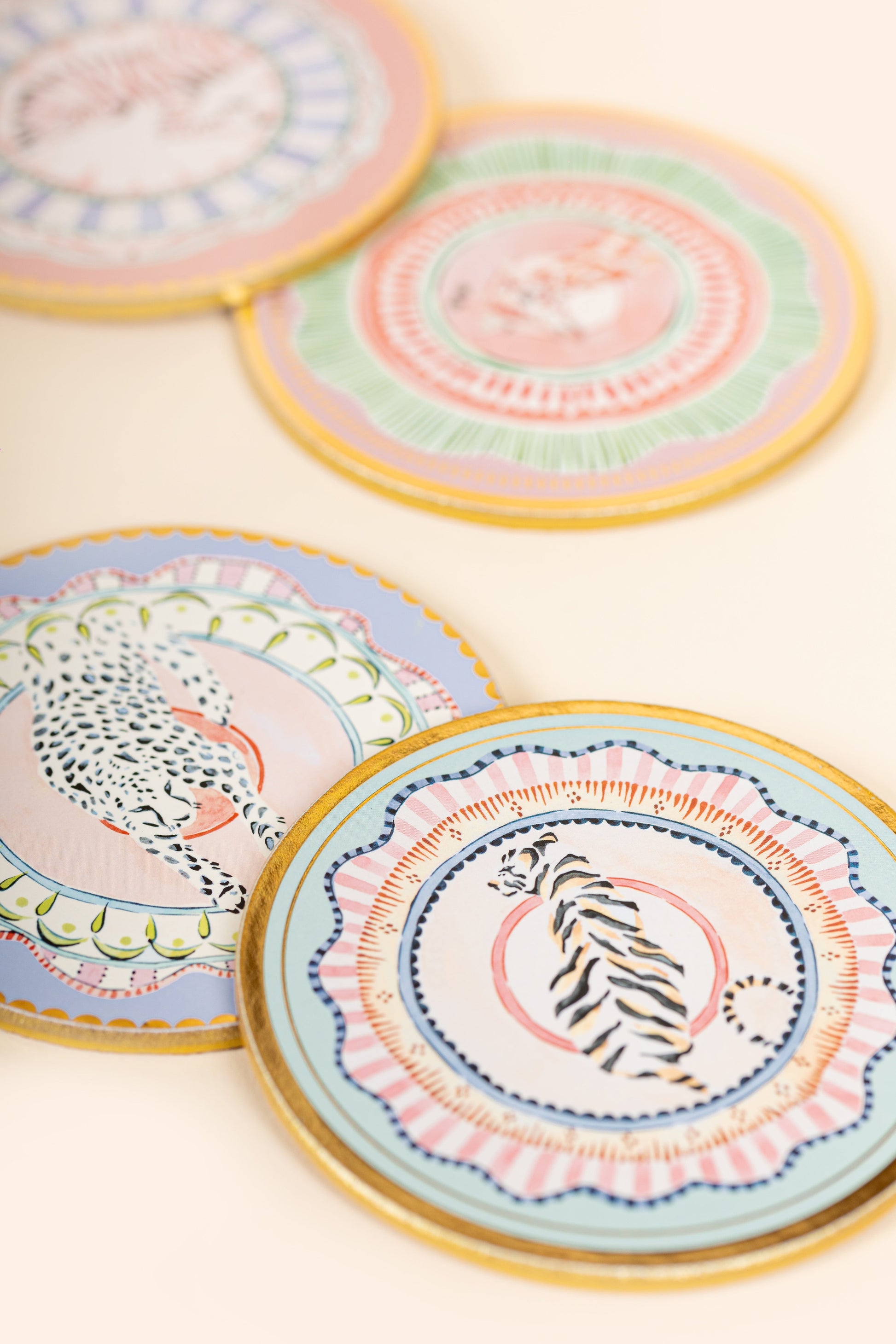 Meet our brand-new cork back coasters - they're pastel perfection! These coasters feature four adorable pastel designs, each hand-illustrated with love. And the best part? They're all decked out in a touch of golden bling. So, whether it's your morning coffee or a nightcap, these coasters promise to make every sip a little more special. Cheers to cozy, stylish sipping!