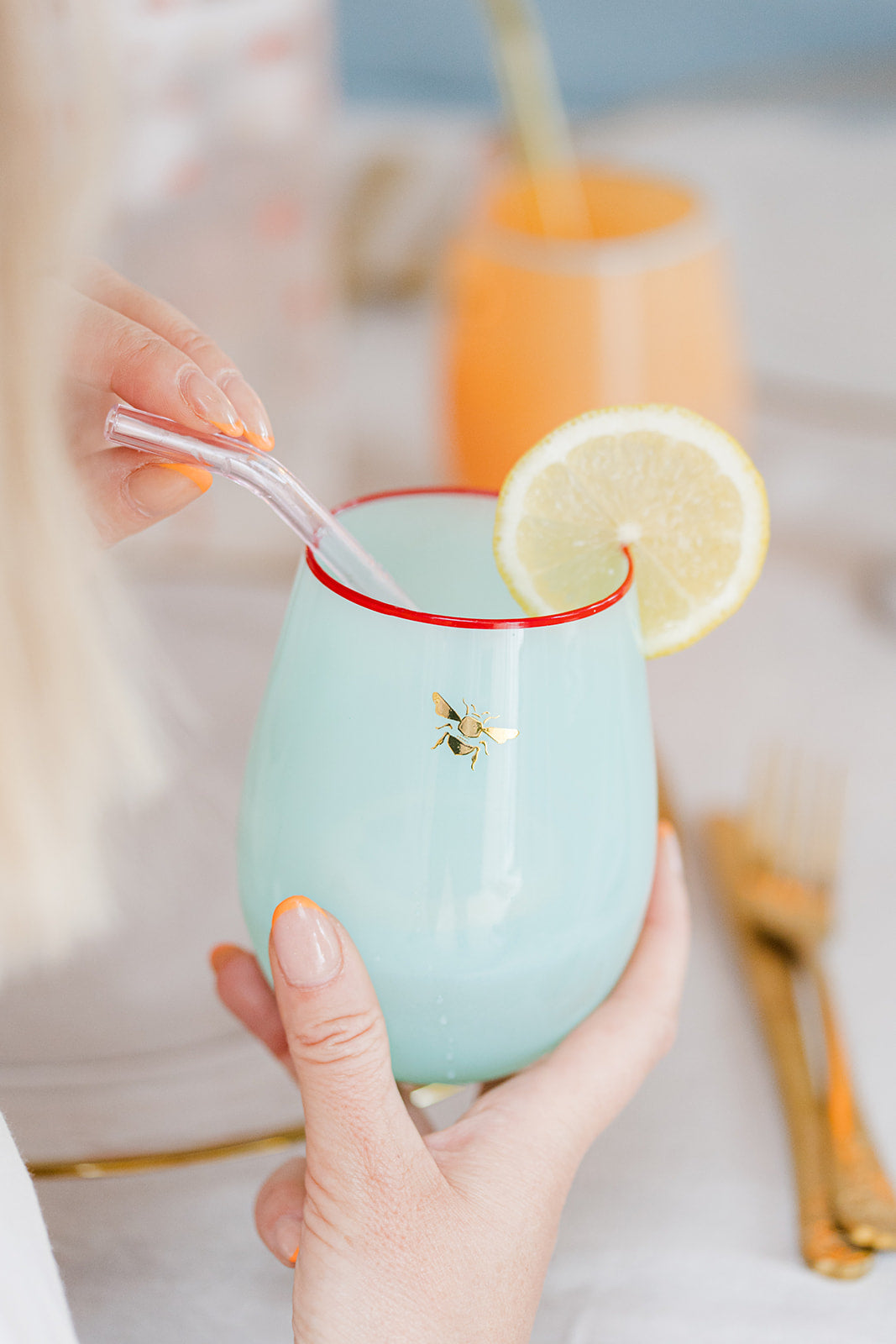 Revamp your glassware collection with our Bee Tumbler Glass Set. These tumblers bring a splash of colour to your table while my iconic elegant gold bee detail adds a touch of sophistication. Perfect for everyday use or special occasions, this set combines style and functionality, making every sip a delight.
