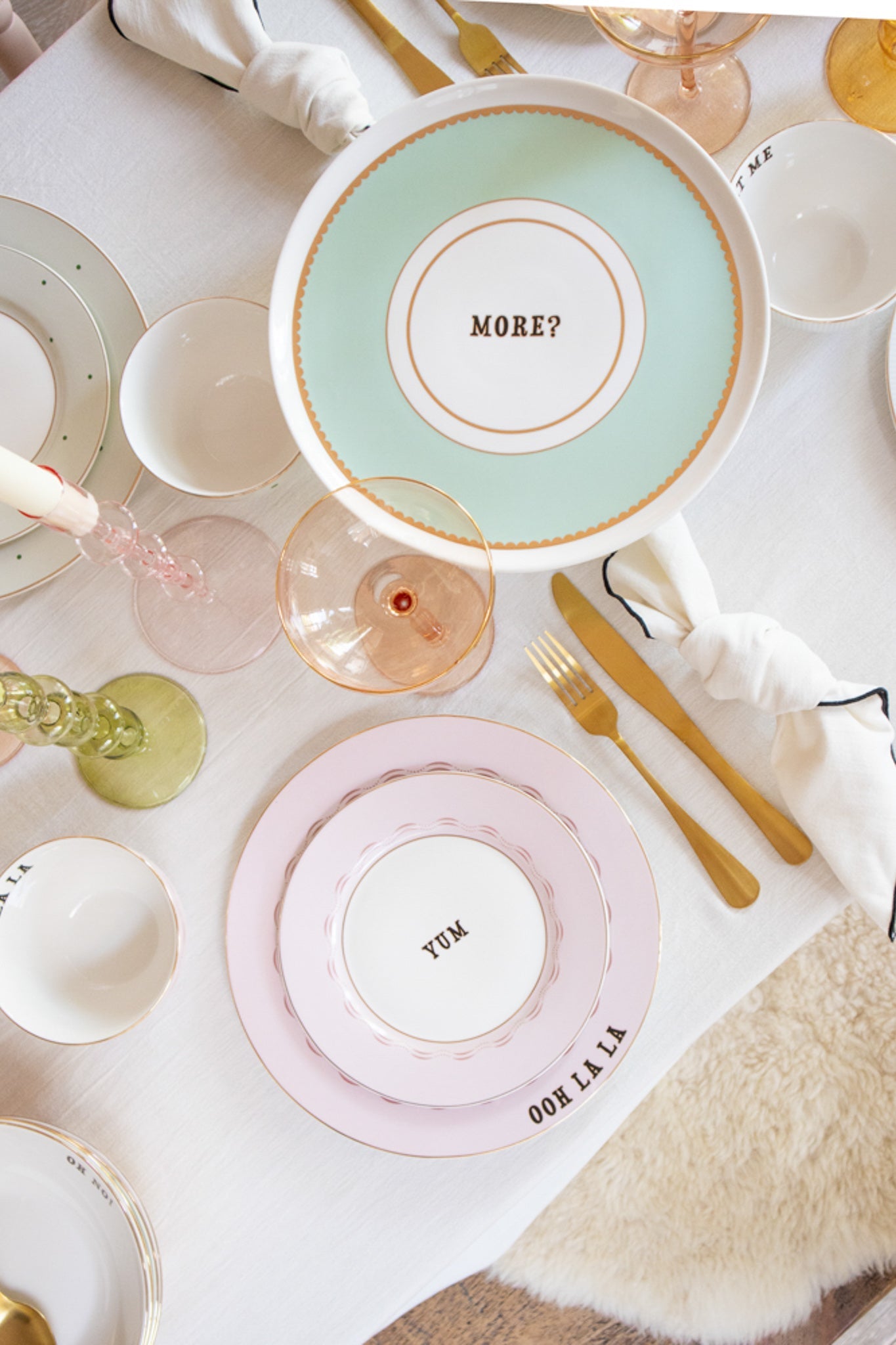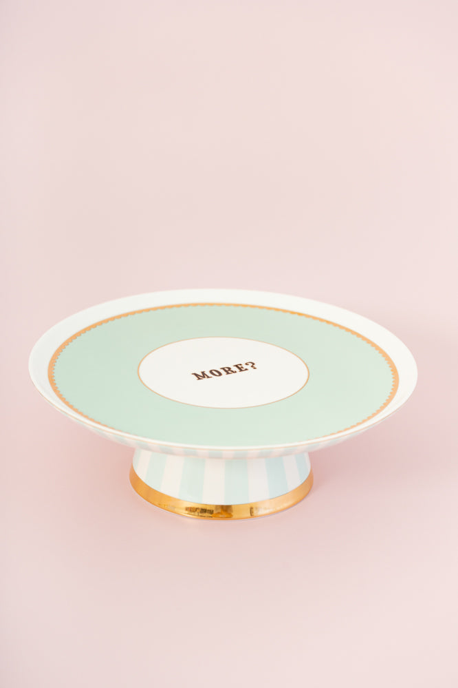 Perfect for the centrepiece to the table, this slogan cake stand is one of my favourites! The 'More?' slogan sits in the middle of the cake stand surrounded by a minty blue border and gold gilding for a luxe feel. The sides of the cake stand has a blue and white candy stripe pattern, so this looks great from all angles.