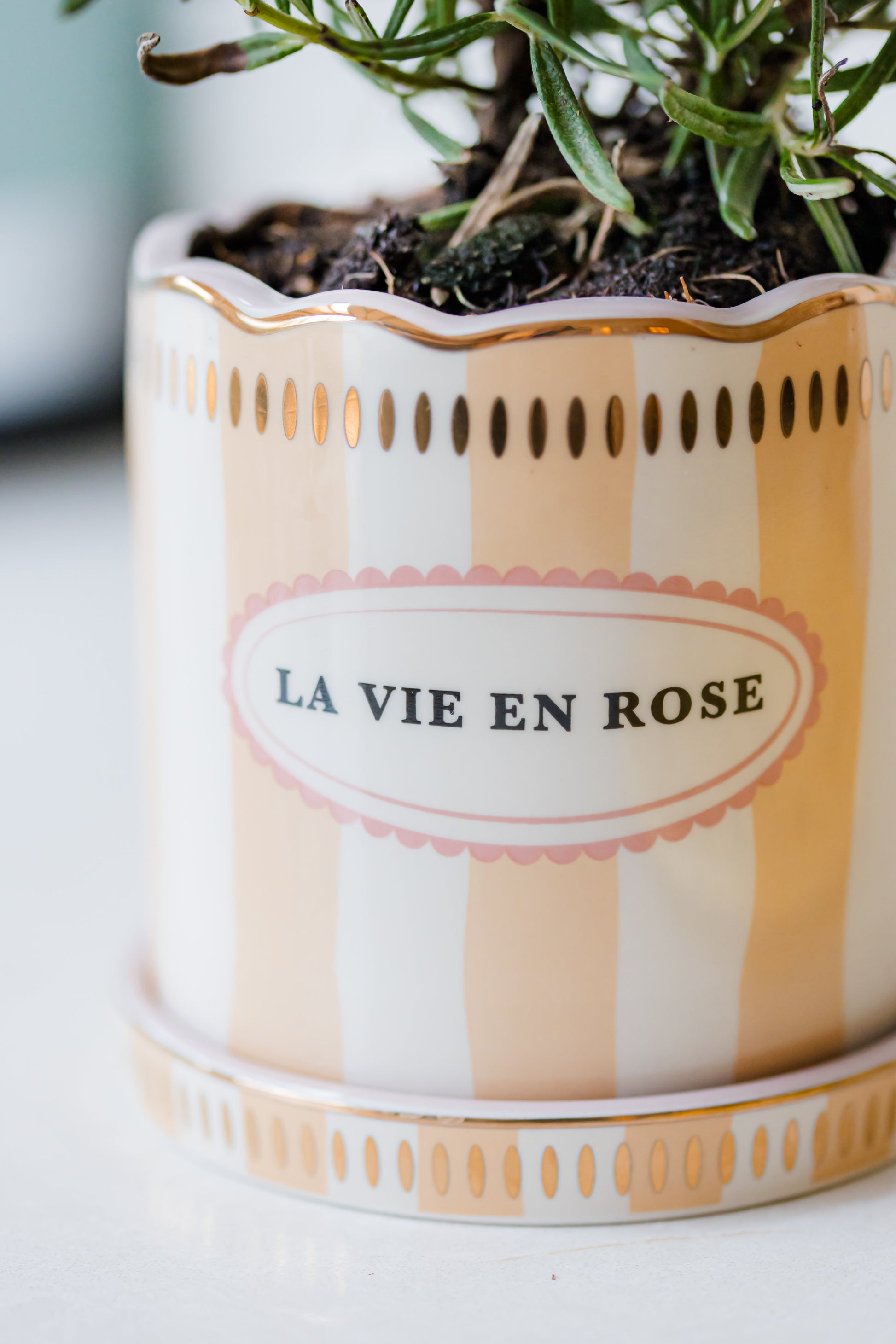 Finally! The perfect striped planter for your beautiful plants. Brighten up your space with this gorgeous planter and saucer set.
