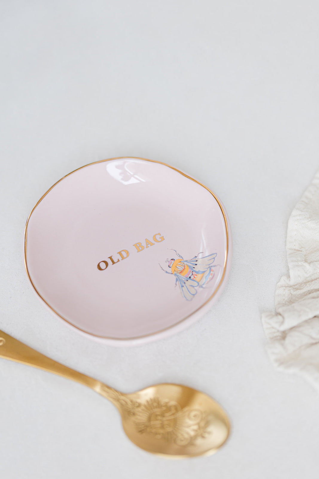 This bee teabag tidy is a charming touch to any countertop! Adorned with my trademark bee, the pastel pink teabag tidy is finished with stunning gold detailing and a cheeky slogan.