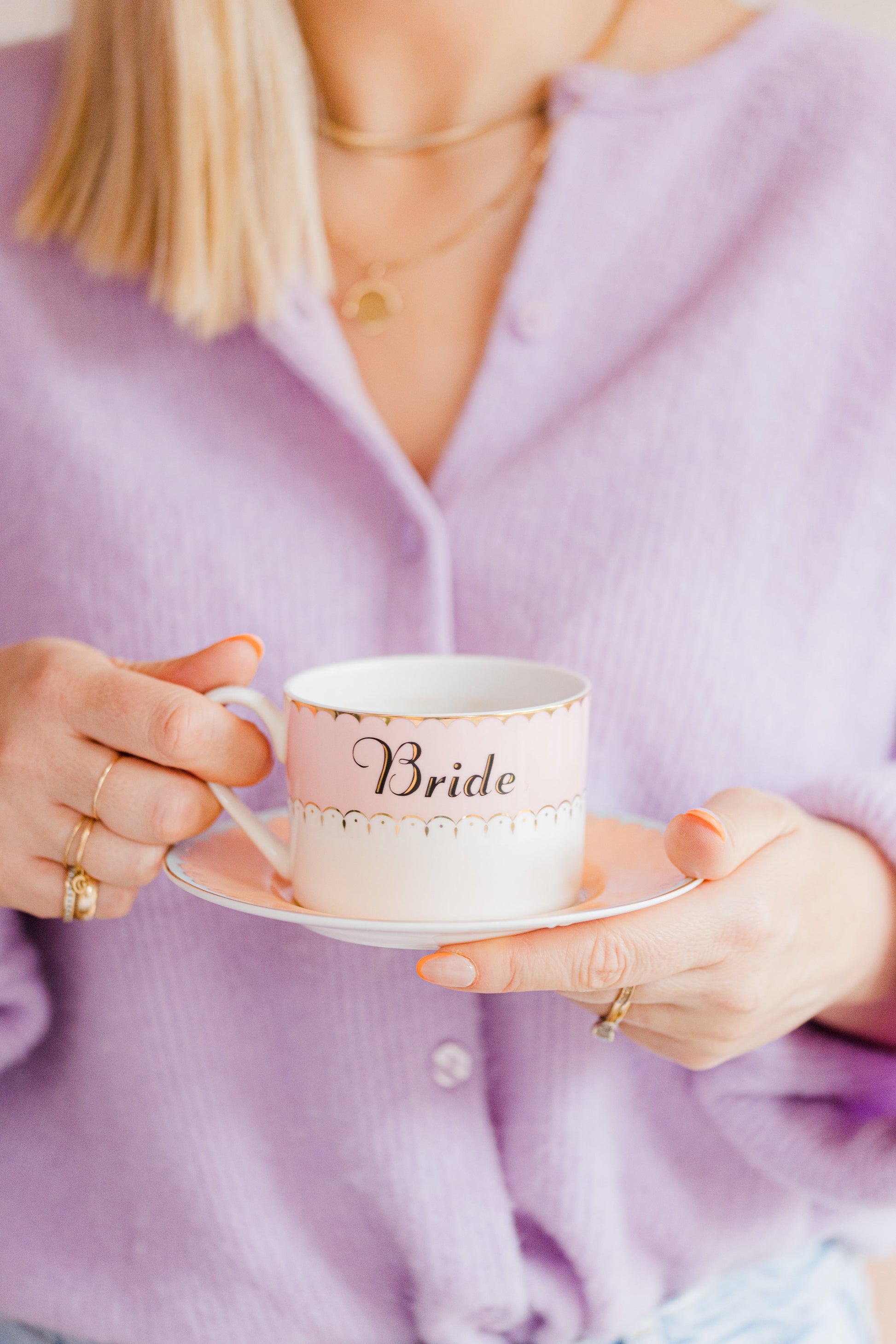 Elevate your tea time experience with the Yvonne Ellen Bride Teacup & Saucer! Let your future missus sip in style with this vintage-inspired pair, featuring charming pastel hues, elegant gold detailing, and a delightful shell design. This set is the perfect gift for your tea-loving bride-to-be!