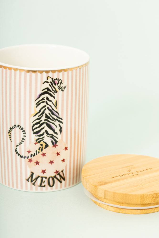 Add our fine china storage jars to your kitchen or bathroom for a stylish storage solution! The bamboo lid fits neatly on the canister, making the Tiger Storage Jar airtight and suitable for storing dried foods, coffee, tea or sugar. Featuring the iconic Yvonne Ellen Tiger illustration, this jar should take pride of place on your worktop!