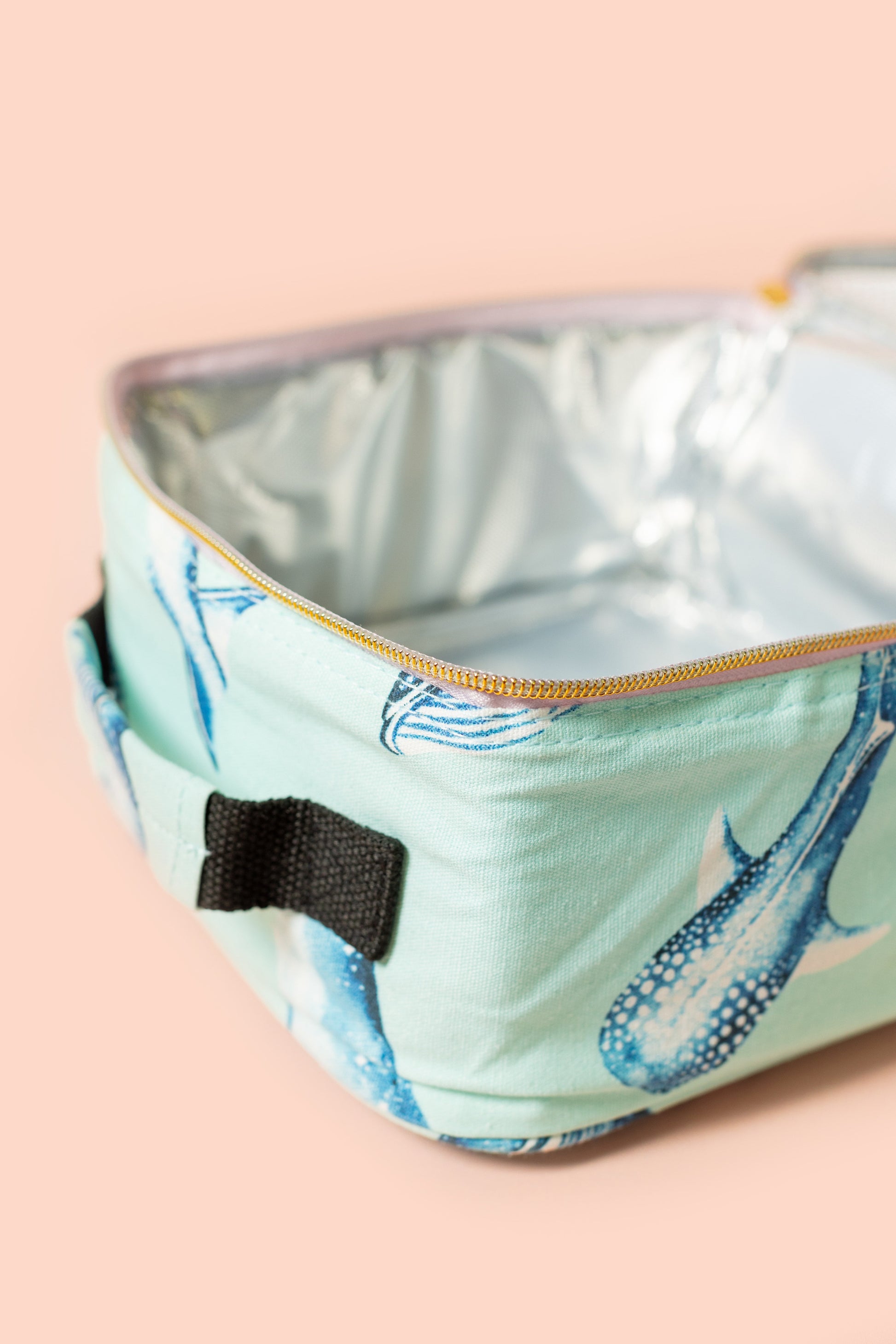 Elevate your picnic game with our stylish yet playful Yvonne Ellen Whale Lunch Bag. This elegant bag features a wipe-clean lining to keep your food fresh and cool, while the blue whale print and gold zipper add a touch of whimsy. Conveniently carry it with the handy strap.